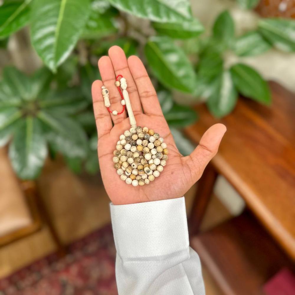 مسباح فاخر مخروط من قرن الغزال، يتميز بندرة الخامة، والخراطة اليدوية، مناسب للهواة ومحبي السبح، عليه تمليكة من نفس نوع الخرز مما يعطي السبحة فخامة وأناقة.